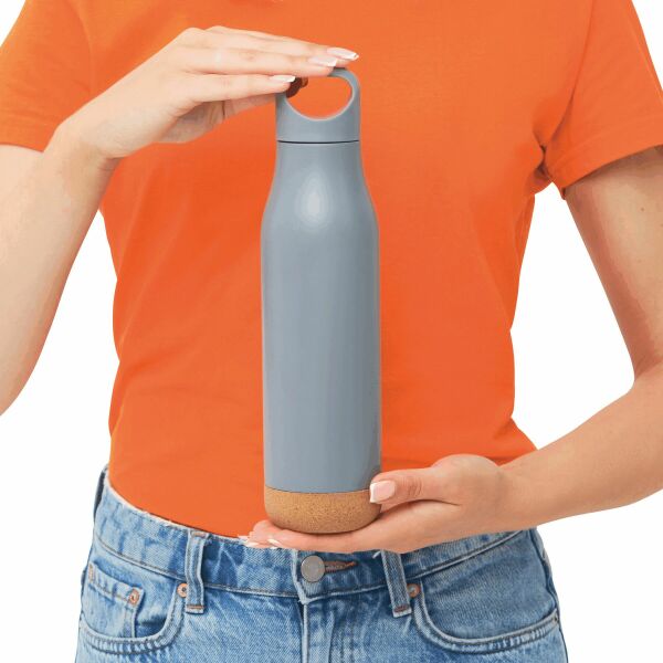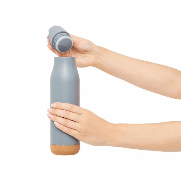 Vacuüm drinkfles CORKY LEGEND dubbelwandig: buiten- en binnenkant van roestvrij staal, kunststof deksel met veilige schroefdop, met kurken bodem, inhoud: ca. 500 ml, houdt ca. 12 uur warm en tot 24 uur koudCORKY LEGEND - Vacuüm drinkfles
