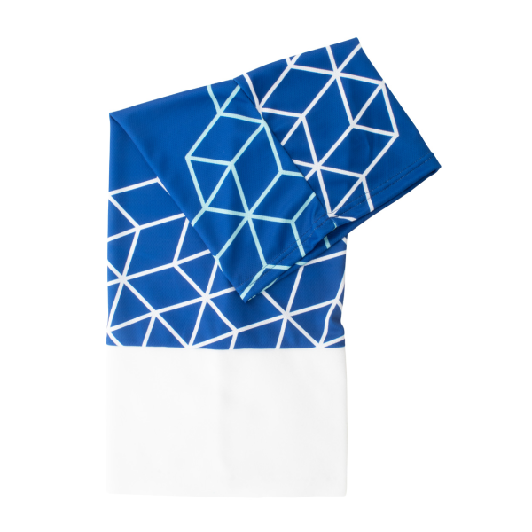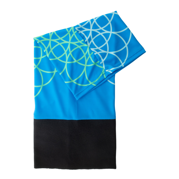Custom made multifunctionele sjaal van ademend en sneldrogend polyester, met gekleurde polar fleece nekwarmer. Met all-over sublimatie bedrukking op het polyester gedeelte. Gemaakt van 100% polyester (135 g/m²) en polar fleece (160 g/m²) stoffen. MOQ: 100 stuks.CreaScarf Winter - custom made multifunctionele sjaal