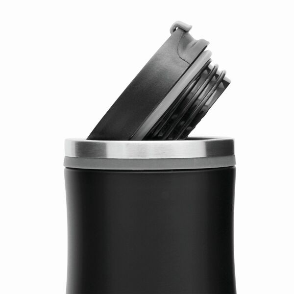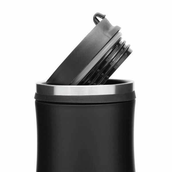 Dubbelwandige roestvrijstalen isoleerbeker DARK CREMA; met kunststof schroefdeksel en geïntegreerde uitklapbare drinktuit, gekleurde accenten en een foam onderzijde voor goede grip. Inhoud ca 400ml.DARK CREMA - Dubbelwandige roestvrijstalen isoleerbeker