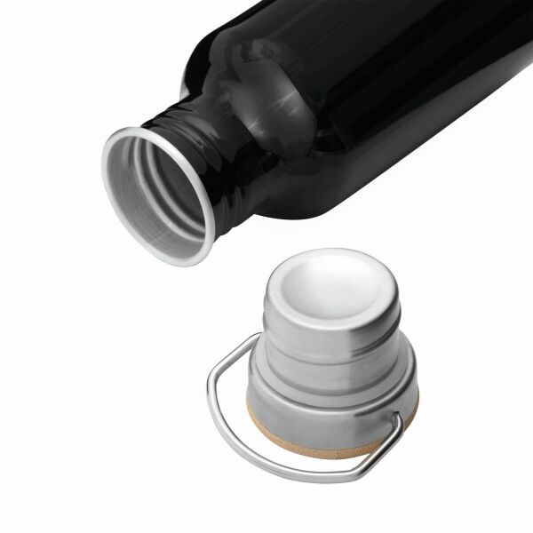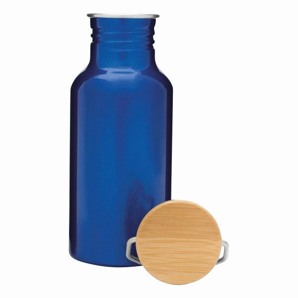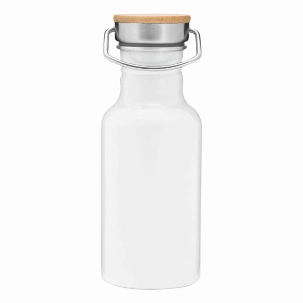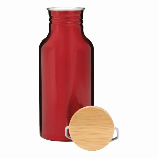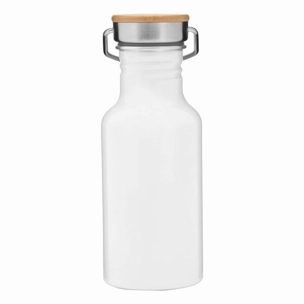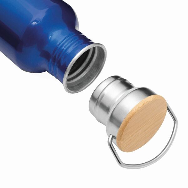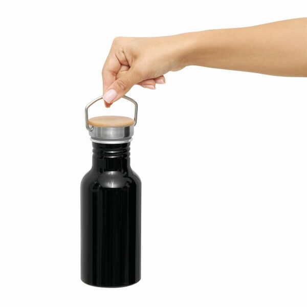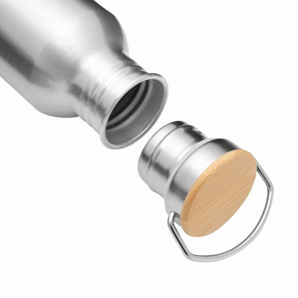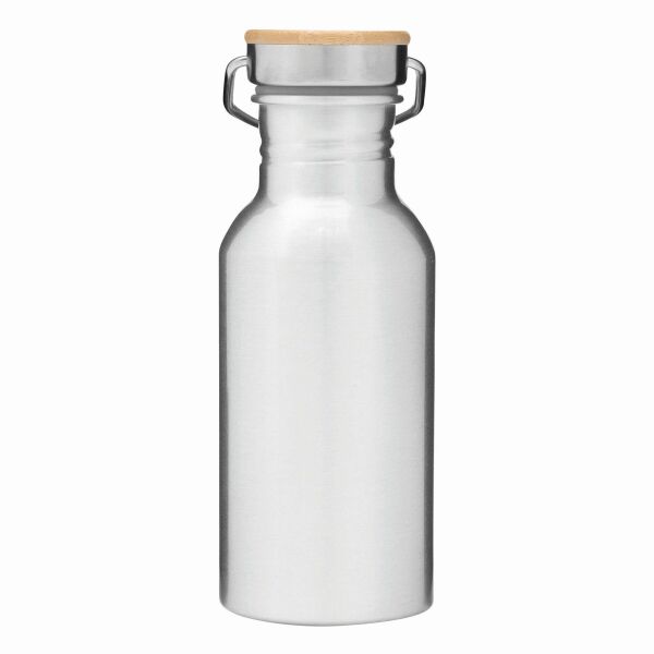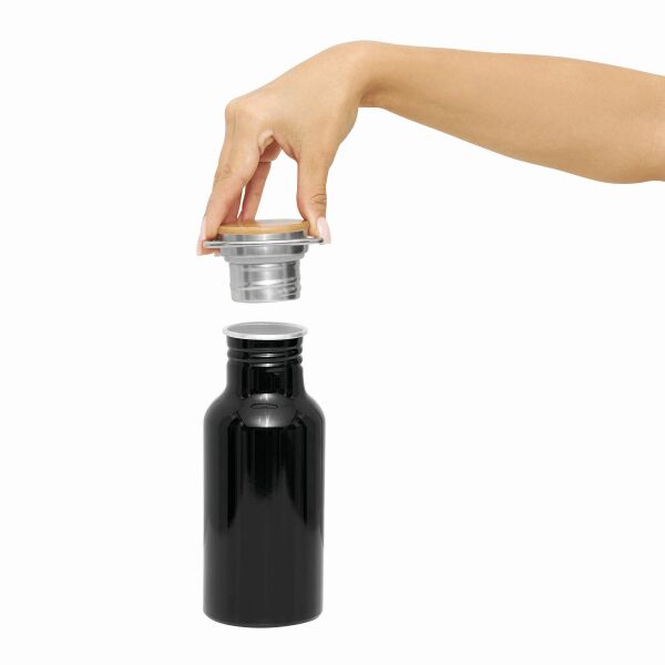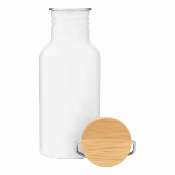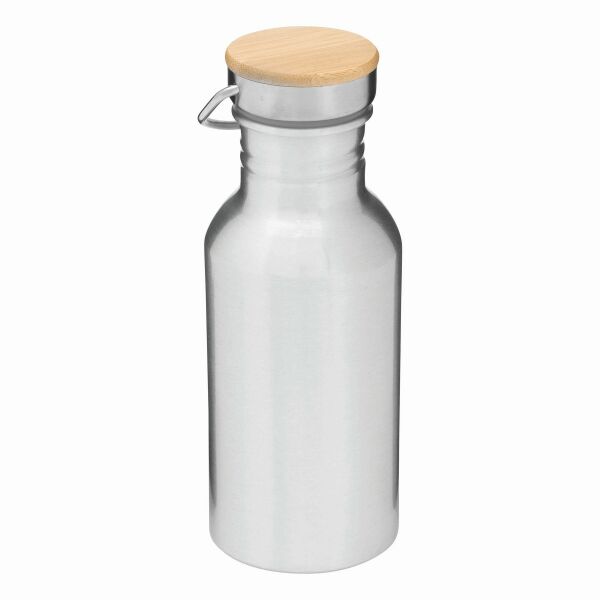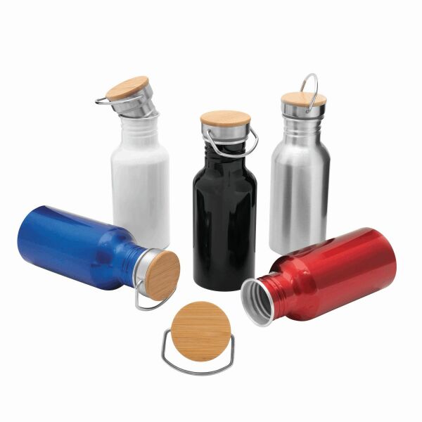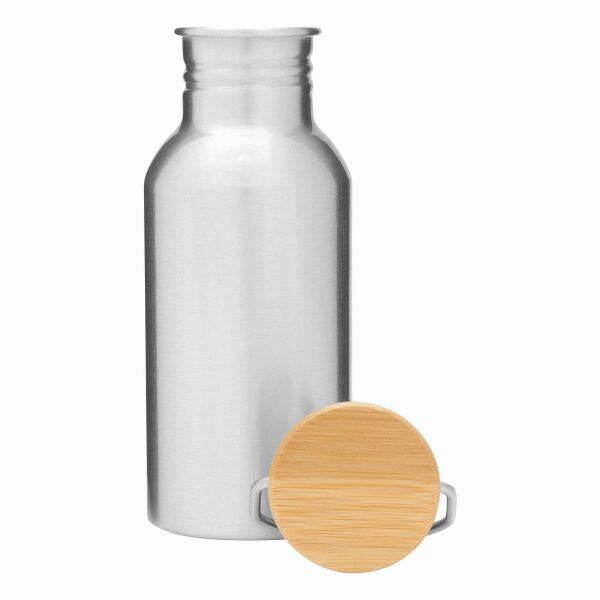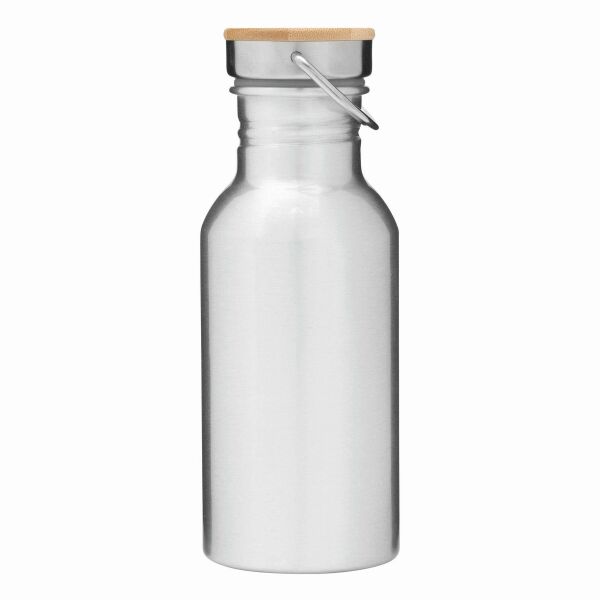 Aluminium drinkfles ECO TRANSIT: enkelwandig, bamboe schroefdop met draagbeugel, inhoud ca. 550 ml.ECO TRANSIT - Aluminium drinkfles