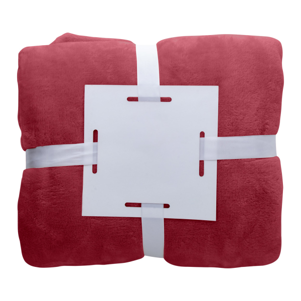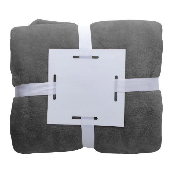 Flanellen fleece deken, 280 gr / m². Verpakt met wit lint en bedrukbare papieren kaart.