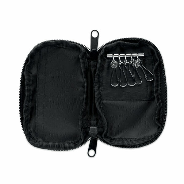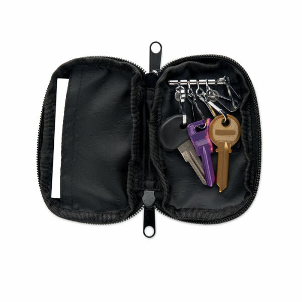 Sleuteletui met rits van 300D RPET met 210D RPET voering. Met 5 sleutelhouders.
